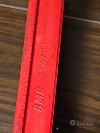 Filtro aria per auto con cornice rossa. 314/01 - Design a pieghe. - Materiale filtrante di colore bianco e nero.