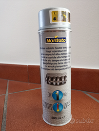Ho inoltre una bomboletta nuova sigillata di vernice spray speciale Norauto per alte temperature colore argento nuova sigillata, adatta a verniciare marmitte e qualunque parte soggetta ad elevate temperature. Bomboletta spray da 500ml.