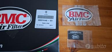 Per Abarth 595 e 695, vendo filtro aria sportivo a pannello BMC in cotone lavabile usato per circa 700 km. Originale Abarth. Compresa la targhetta di alluminio “Abarth by BMC” e un adesivo da applicare alla scatola filtro. Pronto per l’uso. Il filtro a pannello è installato nell’air box originale della vettura, in sostituzione del filtro originale senza fare nessuna modifica. È costruito con materiali altamente performanti che consentono un incremento del flusso dell'aria al motore rispetto al filtro aria originale in carta o in spugna. L'elemento filtrante è costituito da una rete d'alluminio trattata con resina epossidica e da strati di cotone speciali imbevuto da olio minerale di colore rosso a bassa viscosità per migliorare l’efficienza della filtrazione senza compromettere la permeabilità al flusso d'aria.