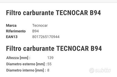 Applicabilità marca: Altro Applicabilità modello: Altro Filtro carburante tecnocar B94