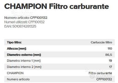 Filtro gasolio Champion CFF100132