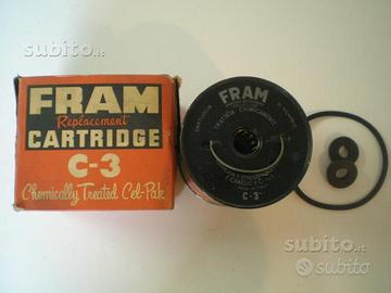Filtro olio d'epoca Fram/Carello cod. C 3, in imballo originale, adatto per auto anni '60 es. fiat 1100, porsche 912, ecc.
