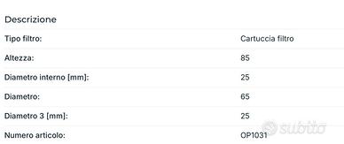 Applicabilità marca: Altro Applicabilità modello: Altro Tecnocar filtro olio op 1031