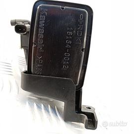 Filtro vapori carburante originale Kawasaki, codice OEM 16164-0012, prodotto da ROKI, completo di valvola EVAP e tubazioni. Questo canister fa parte del sistema di controllo delle emissioni evaporative, avendo il ruolo di catturare i vapori di carburante dal serbatoio e reindirizzarli verso l`aspirazione del motore. È un canister a carboni attivi compatibile con una vasta gamma di motociclette Kawasaki, ideale per la sostituzione in caso di usura o difetti al sistema EVAP.Ricambio noto come: filtro vapori combustibile, canister a carboni attivi, filtro emissioni evaporative moto, canister EVAP Z900, contenitore vapori benzina Ninja, filtro recupero vapori, valvola EVAP; e conosciuto a livello internazionale sotto forma di: fuel vapor canister, activated carbon canister, EVAP canister, evaporative emissions filter, fuel vapor recovery filter, EVAP system canister.