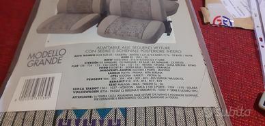 Fodere copri sedili auto Nuove ancora confezionate. Compatibili con molti modelli come da foto. Coprisedili modello Grande Antares vintage anni 70/80. La foderacalza ugualmentesulle vetture che hanno il posteriore sdoppiato. Se interessati posso inviare altre foto.