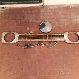 mascherina anteriore da sistemare ,una targhetta laterale, logo volante,una coppa copri cerchio, targhetta con numero di telaio,4 maniglie dalle quali ci sarà poco da recuperare