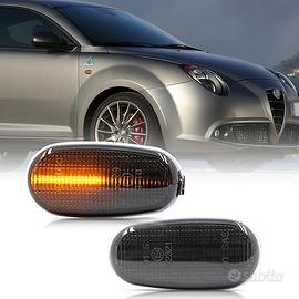 Frecce LED dinamiche con effetto sequenziale, colore nero fumè, studiate per sostituire i gruppi ottici originali di Alfa Romeo Mito, 147, GT e Fiat Bravo 2 (2007-2014).