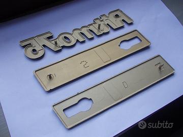 Per Fiat Ritmo 75 "Targa Oro",vendo una scritta posteriore e una coppia di laterali.Nuove (in metallo).Disponibile anche una coppia di laterali per 65 "Targa Oro".