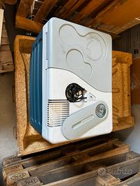 frigorifero termoelettrico Mobicool, nello specifico una versione speciale dedicata a Topolino (Mickey Mouse), riconoscibile dai celebri profili a forma di orecchie sul coperchio e sul frontale. Si tratta di un prodotto molto versatile, poiché appartiene alla categoria dei "frigoriferi ibridi" capaci sia di raffreddare che di riscaldare. 📋 Caratteristiche Tecniche Questo modello (generalmente basato sulla serie G26 o G30) ha le seguenti specifiche standard: • Tecnologia: Termoelettrica (sistema Peltier). Non ha un compressore, il che lo rende silenzioso ma dipendente dalla temperatura esterna. • Funzioni: * Raffreddamento: Riesce a scendere fino a circa 18°C sotto la temperatura ambiente. • Riscaldamento: Può riscaldare l'interno fino a circa 65°C (utile per mantenere in caldo cibo già cotto). • Capacità: Circa 25-26 litri (può contenere bottiglie da 1,5 litri in verticale). • Alimentazione: Doppia tensione. • 12V DC: Presa accendisigari dell'auto (cavo visibile in foto). • 230V AC: Presa di corrente domestica standard. • Isolamento: Schiuma di poliuretano di alta qualità. • Extra: Maniglia multifunzione che funge da blocco per il coperchio o da supporto quando è aperto.