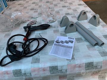 Completo di Istruzioni in italiano, cavi di alimentazione corrente di rete o batteria auto, viteria per montaggio eventuali maniglie.