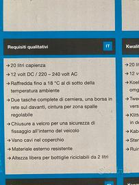 Bibite fresche in piena estate, cibi caldi dopo molte ore di marcia … Nessun problema grazie al frigorifero scaldavivande originale Volkswagen (dai consumi ridotti) con il design Volkswagen. Il box ha una capacità di ca. 24 litri (inserto coperchio isolante) e garantisce la corretta temperatura in ogni occasione. Esso è l’ideale per trasportare in verticale senza problemi bottiglie da 2 litri, e può essere alimentato a 12 Volt in auto o 230 Volt a casa o in hotel. Una dispositivo di protezione dallo scaricamento della batteria e un coperchio isolante supplementare da utilizzare in sostituzione a quello refrigerante offrono la necessaria sicurezza e il massimo comfort possibile. Classe di efficienza energetica A++.