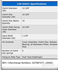 Vendo frizione Luk causa ordine errato, come si può vedere la frizione è completa di imballaggio originale poichè non posso usarla perche sbagliata per la mia auto. Monta su: