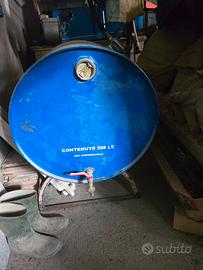 Vendesi kit professionale per la gestione di liquidi (oli, carburanti, lubrificanti), composto da fusto in metallo rinforzato da 208 litri e solido supporto a cavalletto in acciaio. Questa soluzione è studiata per ottimizzare i tempi di lavoro in officina o azienda agricola, garantendo sicurezza e precisione durante il travaso.