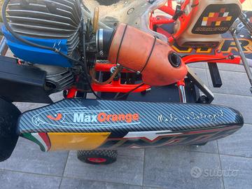 Vendo mini kart Intrepid speedy2 Telaio anno 2024/2025 Pastiglie Nuove . Pedaliera regolabile. Volante regolabile. Treno di Gomme Vega Rosse fresche. Motore PARILLA IAME SWIFT 60cc Anno 2014 Appena eseguita lappatura cilindro e cambio Pistone IAME misura 41.81 2lt all’attivo . Carburatore Dell’orto da 18 Frizione IAME nuova. Vendo con pignone da 10 e 2 corone 82/84 Batteria x accensione al volante 🆗 POSSIBILITÀ SI VENDERE SOLO TELAIO €950 completo ma: senza motore e impianto elettrico.