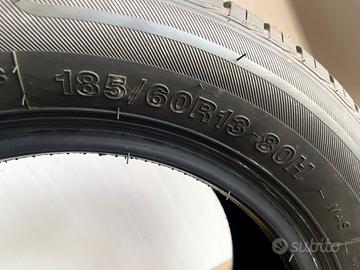 Gomme nuove mai usate…Vendo per errato acquisto…Le avevo acquistate per un auto d’epoca ma purtroppo e’ troppo larga e non posso montarla. Ho anche la fattura dell acquisto se serve…Misura 185/60/13…