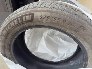 Gomme consumo al 20% MICHELIN invernali 235/55 R19 105V vendo perché una è stata colpita sul lato esterno da una pietra ma le tele non sono danneggiate. Vendo tre pezzi, la quarta danneggiata la regalo se di interesse. Spese spedizione escluse, meglio ritiro diretto a cura acquirente,