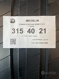 PREZZO DELL'ANNUNCIO E' RIFERITO AD UN SINGOLO PNEUMATICOMISURE: 315 40 21MARCA: MICHELIN LATITUDE SPORT 3INDICE DI CARICO E VELOCITA': 111Y