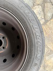 Vendo causa cambio auto n° 4 gomme 4 stagioni complete di 4 cerchioni in ferro 165/70/R14 81T. Usate ma ancora in buono stato.