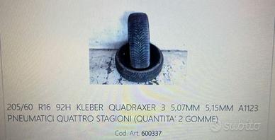Vendo gomme auto 4 stagioni Misure: 205 x 60 x 16 2 gomme michelin 2 gomme kleber NO SPEDIZIONE