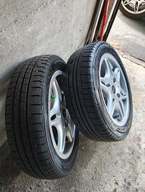 Treno di gomme estive montate su cerchi in lega marca Hankook anteriore , Bridgestone posteriore.