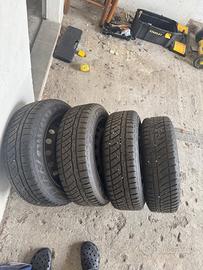 Vendo 4 cerchi in ferro a 4 fori più 4 gomme praticamente nuove con all’incirca 1000 km misura 175.65.15 prezzo non trattabile