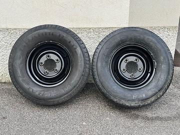N.4 ruote ( cerchi e gomme ) per Defender 90 110 130 Misura pneumatici: 235/85 R16C 120/116 Q M+S Cerchi in ottimo stato Visto l'ingombro E' offerto solo il ritiro in loco