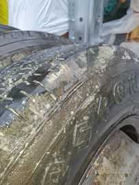 Vendo tutto in blocco 4 gomme montate su cerchi compreso di camera d' aria e flap. Una gomma firestone era di scorta ... quindi ha il 100 % battista, le altre sono praticamente finite come da foto. Si possono usare da montare su un agricolo. Misura gomme 6.00 r 16 . Erano montate su un om 40/35 nc
