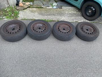 Vendo gomme e cerchioni in ferro per Fiat Panda. Due gomme sono proprio bio e hanno percorso meno di 5000km, le altre sue sono al 75 %. Compresi anche i 4 copricerchi originali.