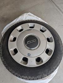 vendo 4 cerchi in ferro 4 gomme invernali in ottimo stato +4 copricerchi fiat 500 cerchi e gomme da 14 ...cambio per montaggio cerchi in lega da 15 ...non spedisco 100 euro tutto .