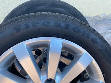 4 gomme estive Firestone R16 205/55 usate solo per 8.000km complete di 4 cerchi in lega Toyota originali. Tutto perfettamente pulito come si vede dalle foto