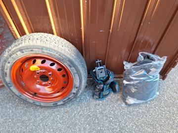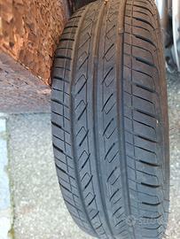 Vendo 4 gomme usate seminuove misura 155/65R13 73 T estive + copricerchi + ruotino scorta originale mai usato + cric e chiavi per cambio gomme nuovi. Regalo copri-sedili nuovi mai usati per FIAT 600 anno 2004. Tutto a Euro 150.