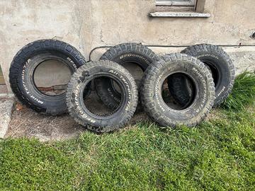 BF Goodrich Mud Terrain T/A 255-80-16 n4 gomme + n1 gomma BF All Terrain 235-70-16. Le 5 gomme Goodrich sono sprovviste di cerchio, battistrada residuo oltre 1,5 centimetri.