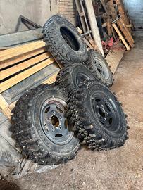 Ziarelli Extreme Forest ricoperte 235-70-16 furbe (sono 255-80-16) n4 gomme su cerchi originali Land Rover in ferro battistrada residuo 2 centimetri + n1 gomma di scorta uguale misura mai montata.