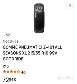 Vendo 4 gomme nuove, comprate per errore su Amazon, perché non mi conviene fare il reso. Goodiride 205/55 R17 95V 4 stagioni.