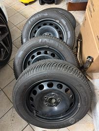Vendo gomme invernali misura 205/55 R16, inclusi nel prezzo anche i cerchi in ferro e 4 coprimozzo, le ruote erano montate su Golf 7 e 8 quindi le misure dei fori dei bulloni di fissaggio dei cerchi sono compatibili con le misure Volkswagen.