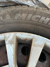 Gomme da neve Lancia Delta, comprensive di cerchio in ferro e copricerchio.