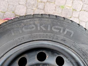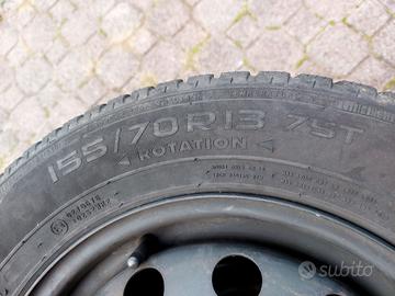 Vendo 4 gomme invernali montate su cerchi in acciaio 155/70 R13 marca Nokian in buono stato, 4 fori, interasse tra fori vicini 7 cm in diagonale 10 cm (vedi foto). Consegna a mano.
