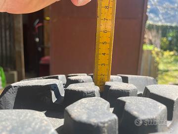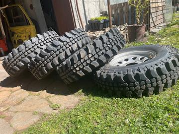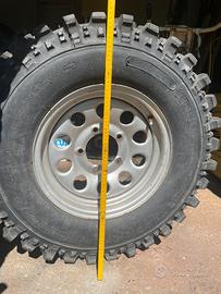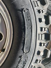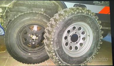 Vendo gomme piu cerchi per Suzuki Samurai/SJ/vitara/jimny Gomme ricoperte furbe misura 225 75/15 ma marchiate 195 80/15 Usate poco, disegno extreme con ancora 70% da itilizzare In una foto si vede la differenza con una gomma di misura giusta Consigliate da montare con assetto minimo 2” se no toccano e super ridotte Solo consegna a mano