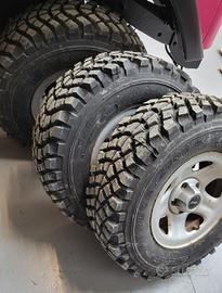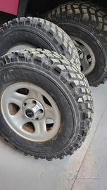 Vendo n. 4 ruote complete per jeep tj, yj, xj, zj, cerchi originali in ferro, gomme nuove ricoperte ma vecchie, misura 225 75 15.