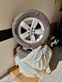 Vendo quattro cerchi originali volkswagen da 17 in condizioni perfette, e regalo gomme invernali termiche antineve al 70 % e battistrada ancora ok. Misura 215 65 17. Per il canale vedi altra foto. Ok per Tiguan, Karoq, Ateca