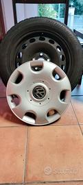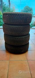 N.4 gomme termiche usate. marca: BRIDGESTONE 205/55/R16. 91 H MOD: BLIZZAK LM-32. KM percorsi 5500. Montate su cerchio in ferro, più n. 4 copricerchi originali Volkswagen a corredo.