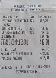 Allego foto dello scontrino riferito all'acquisto dei soli pneumatici, il prezzo di vendita comprensivo anche dei 4 cerchi è leggermente trattabile.