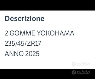 GOMME YOKOHAMA NUOVE 235-45-zr17 Vendo causa errato acquisto.