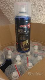 GRASSO SPRAY MULTIUSO AL LITIO 400 ML X 12 Spray composto da grassi saponificati di alta qualità. Si tratta di un grasso ad ampio settore di impiego, presenta una buona stabilità chimica, idrorepellenza e adesività. Protegge dall'acqua, è particolarmente stabile e resistente in ambienti salini, polverosi, alle soluzioni basiche ed acide, agli agenti atmosferici. Ideale per la lubrificazione di cuscinetti, bronzine, mozzi, snodi perni, guide ed in generale nel settore degli autoveicoli, motocicli, macchine agricole e industriali. Vendo la confezione intera ed intonsa composta da 12 bombolette, ciascuna di 400ml al prezzo di 100 euro. 3282174592