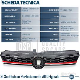 Griglia PER Vw GOLF 7.5 Mascherina gti NIDO D' APE