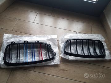 Griglie mascherine anteriori per bmw serie 5 modello f10 con doppia linea, nuove ma 1 (quella tutta nera)ha i fermi di fissaggio rotti a causa di una prova di montaggio errata, l'altra invece (quella con le linee colorate) é intatta, sono costate 60€ ma le vendo a prezzo di recupero, a soli 30€. Ovviamente chi ha una buona dimestichezza può riparare quella rotta e una volta montate fanno un bell'effetto sull'auto.