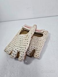 guanti da guida vintage anni 60 Bottari azienda storica di accessori per la guida il modello a mezze dita denominato gentleman driver combina pelle e uncinetto. Sono un accessorio classico per gli appassionati di auto d'epoca, moto o ciclismo, noti per il loro stile e la traspirabilità.