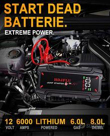 【Instant Portable Jumpstarting】Questo jump starter portatile per auto fornisce una corrente di picco di 6000A, riprendendo le batterie da 12V esaurite (per motori a benzina da 8,0L / diesel da 6,0L) in pochi secondi - più veloce e affidabile dei cavi jumper tradizionali. Potenza istantanea in Palm Size - Progettato per essere il 50% più compatto dei modelli standard mantenendo al contempo potenza di livello industriale - perfetto per auto, auto da passeggero, camper, UTV, pickup, camion, furgone, tosaerba, motociclette, motoneve, barche e altro ancora.