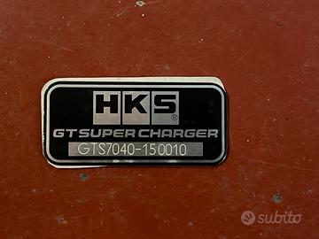 HKS GT1 Supercharger ProKit per Honda S2000, completo di intercooler nero, tubazioni nere, raccordi in silicone neri, filtro aria nero, valvola blow-off TIAL, puleggia da 120 mm e puleggia da 110 mm. Il kit è completo, ma l’unità principale GT-7040 è da sostituire in quanto guasta.