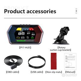 HUD Auto Tachimetro digitale, OBD2 GPS Dual System, display Heads-up, indicatore temperatura acqua, contagiri, adatto per tutti i modelli